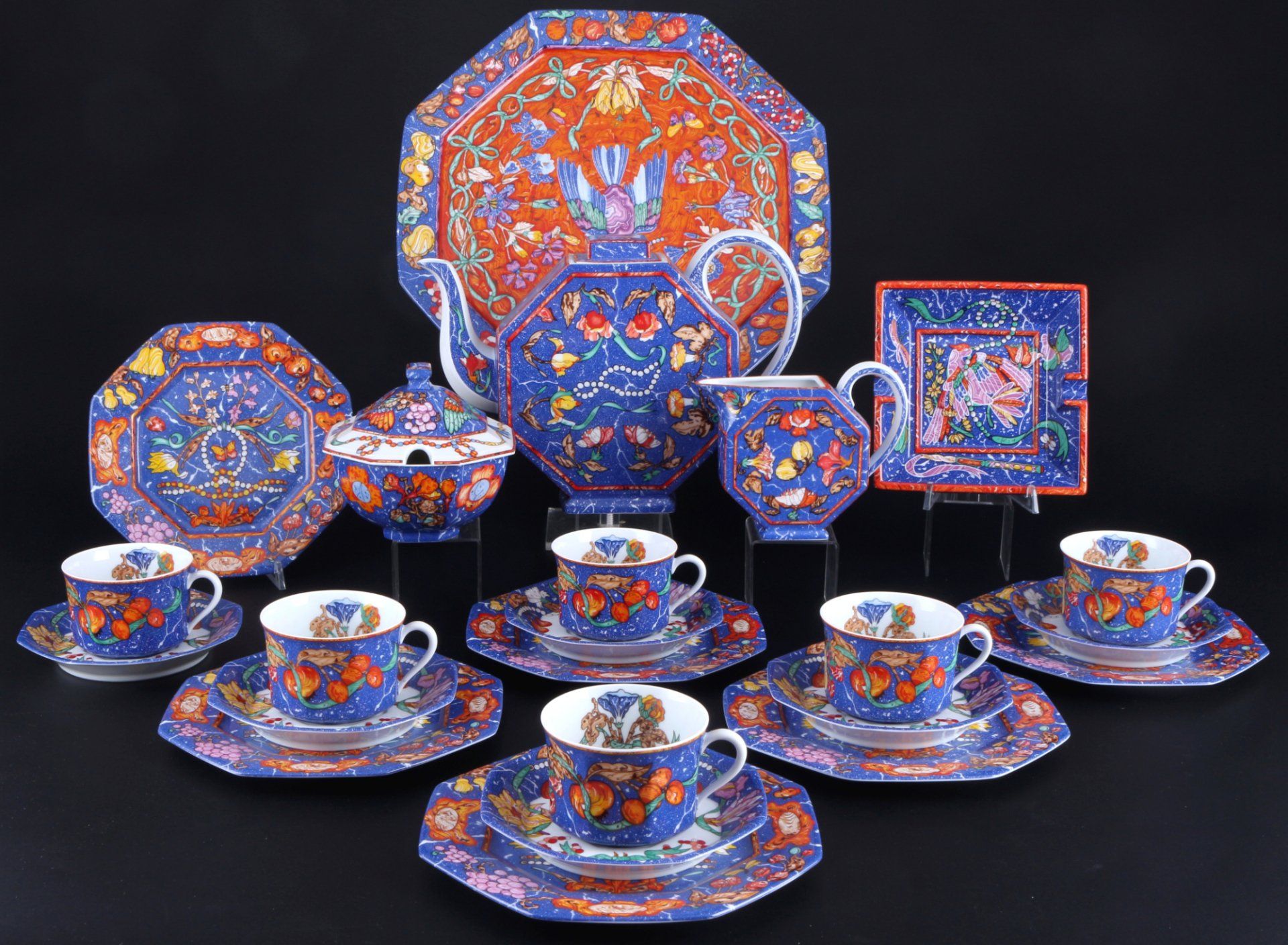 in unserer letzten AuktionHermes Paris Marqueterie Kaffeeservice für 6 Personen23-teiliges Porzellan, Frankreich Paris, blaue Firmenmarke, Dekor Marqueterie - de Pierres d'Orient et d'OccidentLimit 900,- EUR