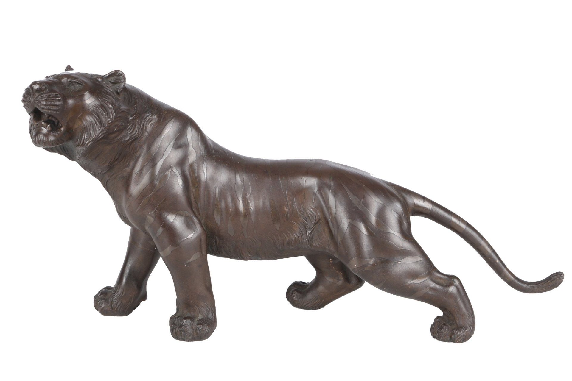 in unserer kommenden AuktionLOS 893Japan Bronze Tiger Meiji-Periode,Meiji-Dynastie, Ende 19. Jahrhundert, am Bauch mit Meistermarke, exzellenter Guss, dunkelbraune Patina, H 24 cm x B 11,5 cm x T 10,5 cm,Limit 200,- EUR